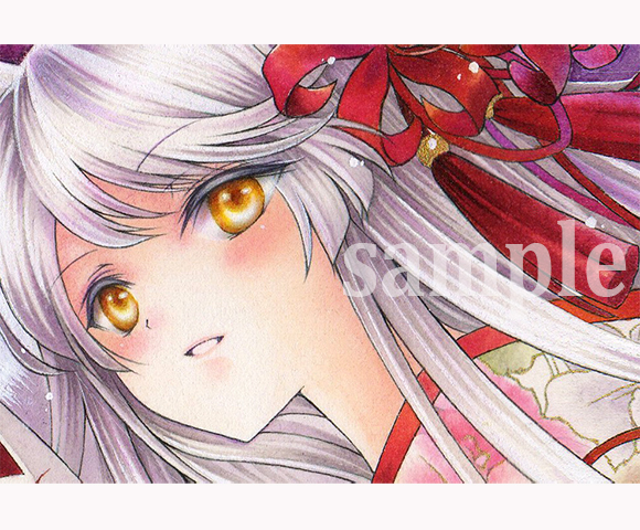 MERMAID SONGとは全然違う絵具と紙ですが、にじみを多用するのと主線が色鉛筆という以外の工程は、ほとんど一緒でございます^^